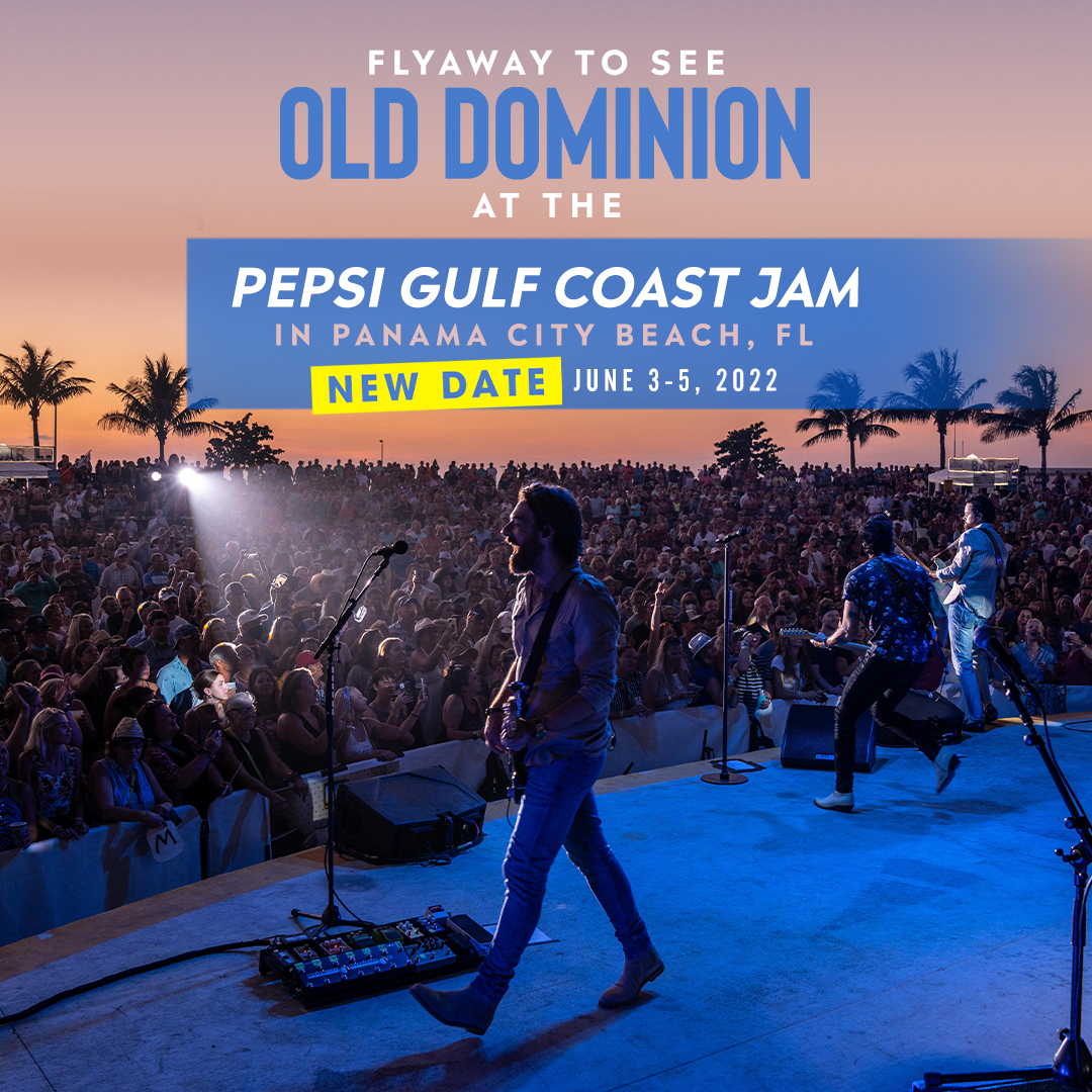| | Old Dominion | | Enter to win a trip to Panama City Beach, Florida to see Old Dominion perform at the Pepsi Gulf Coast Jam! | |